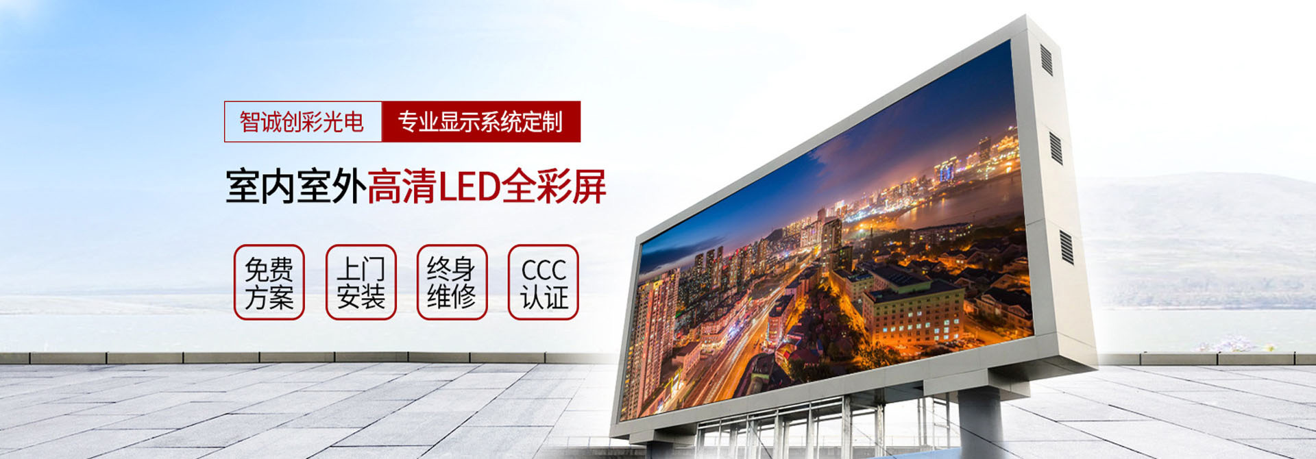 深圳市智誠創(chuàng)彩光電有限公司(品牌:智誠創(chuàng)彩)是一家專業(yè)專注 LED顯示屏研發(fā)、設(shè)計、制造、銷售及工程服務(wù)為一體的國家級高新技術(shù)民營企業(yè),公司主營產(chǎn)品:小間距 LED 全彩顯示屏、戶外廣告?zhèn)髅?LED 大屏幕、室內(nèi)高清 LED全彩屏、透明 LED 全彩屏、舞臺全彩 LED 顯示屏、異形定制 LED 大屏、LED 亮化及照明等應(yīng)用產(chǎn)品。